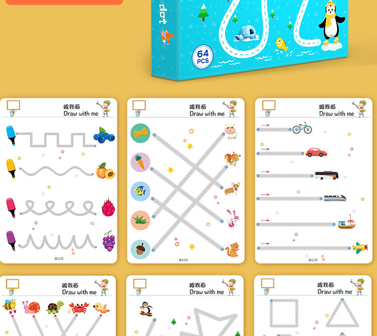 Ce livre propose des exercices ludiques de traçage de lignes, de points à relier, et des dessins magiques pour stimuler la créativité de votre enfant tout en l’aidant à développer ses compétences en écriture et en dessin.