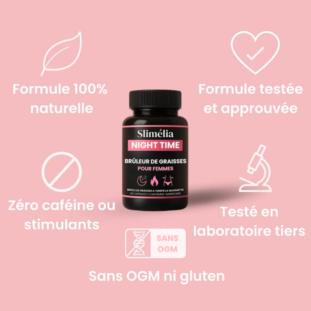 Grâce à ce brûleur de graisses 100 % naturel, votre corps élimine les graisses pendant votre sommeil. Résultat visible dès les premières nuits !