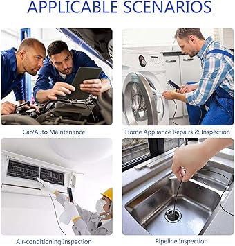 - Câble Flexible et Étanche : Le câble souple et malléable permet de contrôler facilement la direction de la caméra et maintient sa forme pour accéder aux endroits confinés. Avec une étanchéité IP67, elle est adaptée pour explorer les **tuyaux, égouts, fissures murales, et bien plus.