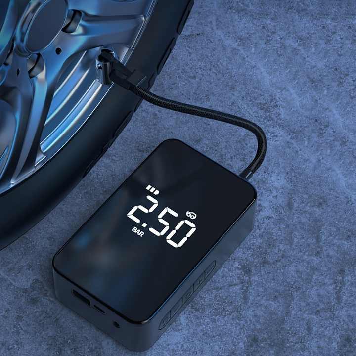 Le compresseur d'air portable sans fil est l'outil idéal pour maintenir vos pneus en parfait état. Compact, pratique et puissant, cet appareil vous permet de gonfler vos pneus de voiture, moto ou vélo rapidement et efficacement, partout où vous en avez besoin. Grâce à sa batterie lithium 6000mAh et à sa lumière LED, vous pouvez l’utiliser même dans des conditions de faible luminosité.