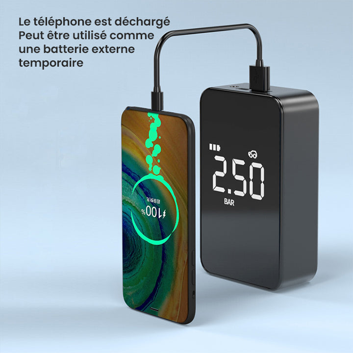 Gain de temps et de commodité : Fini les arrêts dans les stations-service ou la recherche de pompes à air publiques. Gonflez vos pneus où et quand vous en avez besoin.