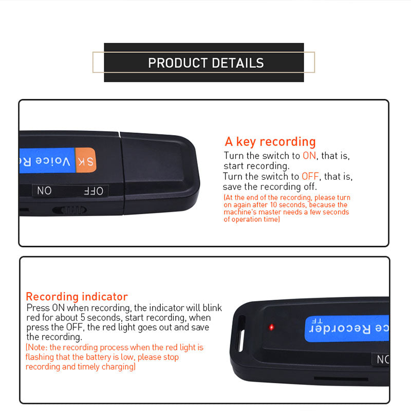 Enregistrement clair : Cet enregistreur vocal numérique offre une qualité sonore nette et fiable. Il peut également servir de clé USB et prend en charge les cartes TF de 1 à 32 Go (non incluse), offrant une grande flexibilité de stockage.