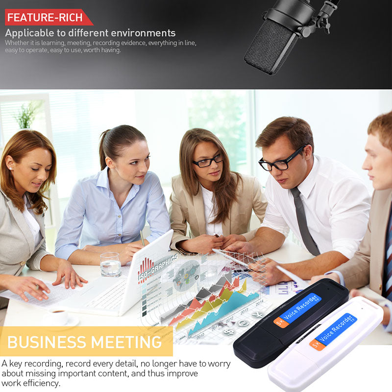 L'Enregistreur Audio USB est un dispositif 2 en 1 à commande vocale,, pensé pour une utilisation pratique et mobile.. Avec son design élégant et sa simplicité d’utilisation, il devient l'outil idéal pour capturer des enregistrements clairs à tout moment.