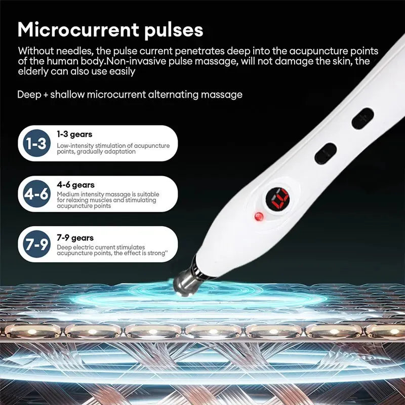 Polyvalent 5 en 1 : Ce stylo combine les fonctions d'acupuncture électronique, EMS, impulsion à micro-courant, et massage musculaire.