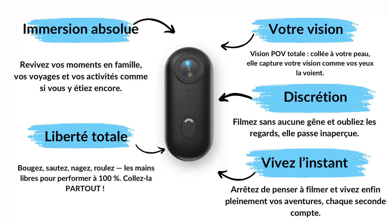 ✅ Fixation magnétique intégrée — portez-la sur vous sans harnais ni support compliqué.