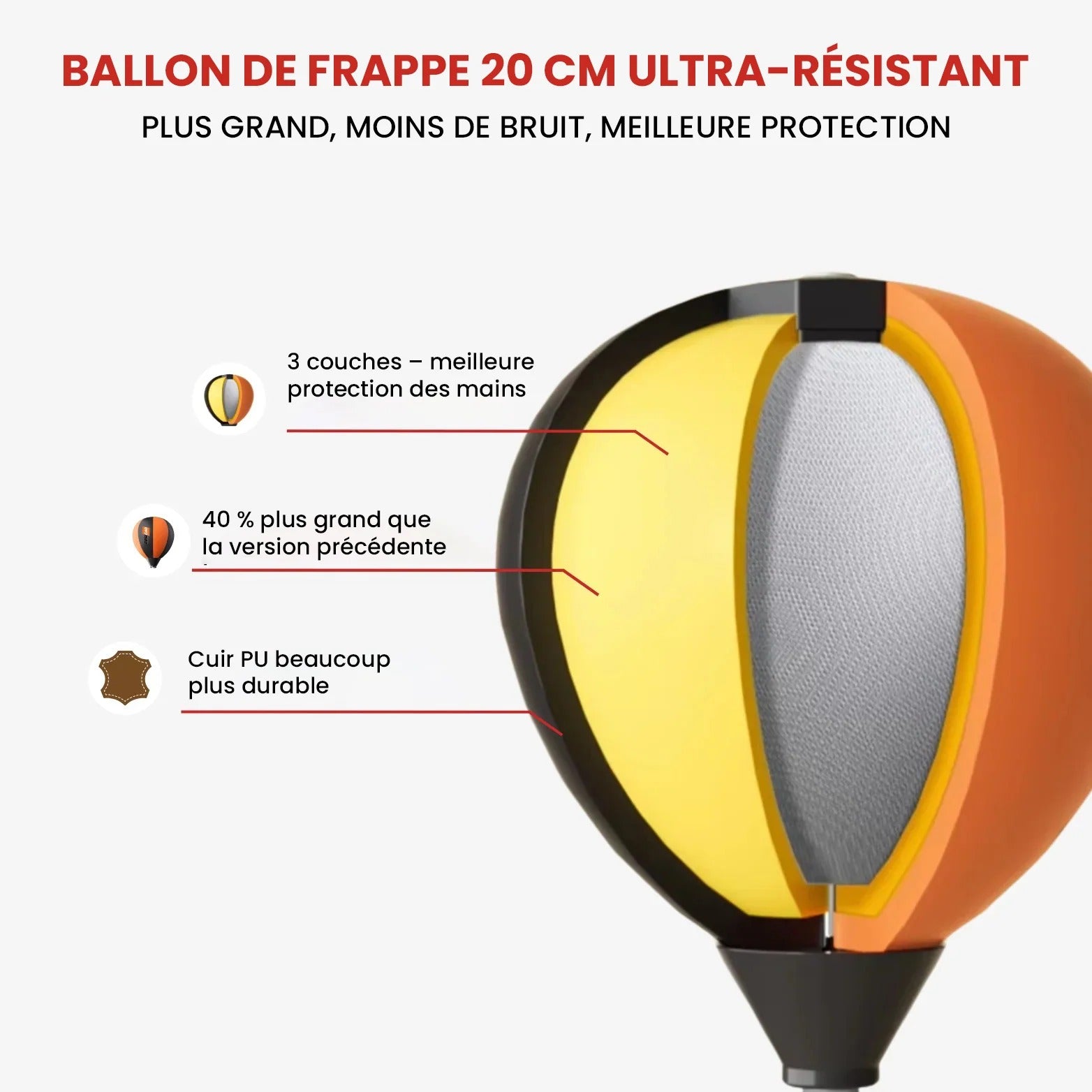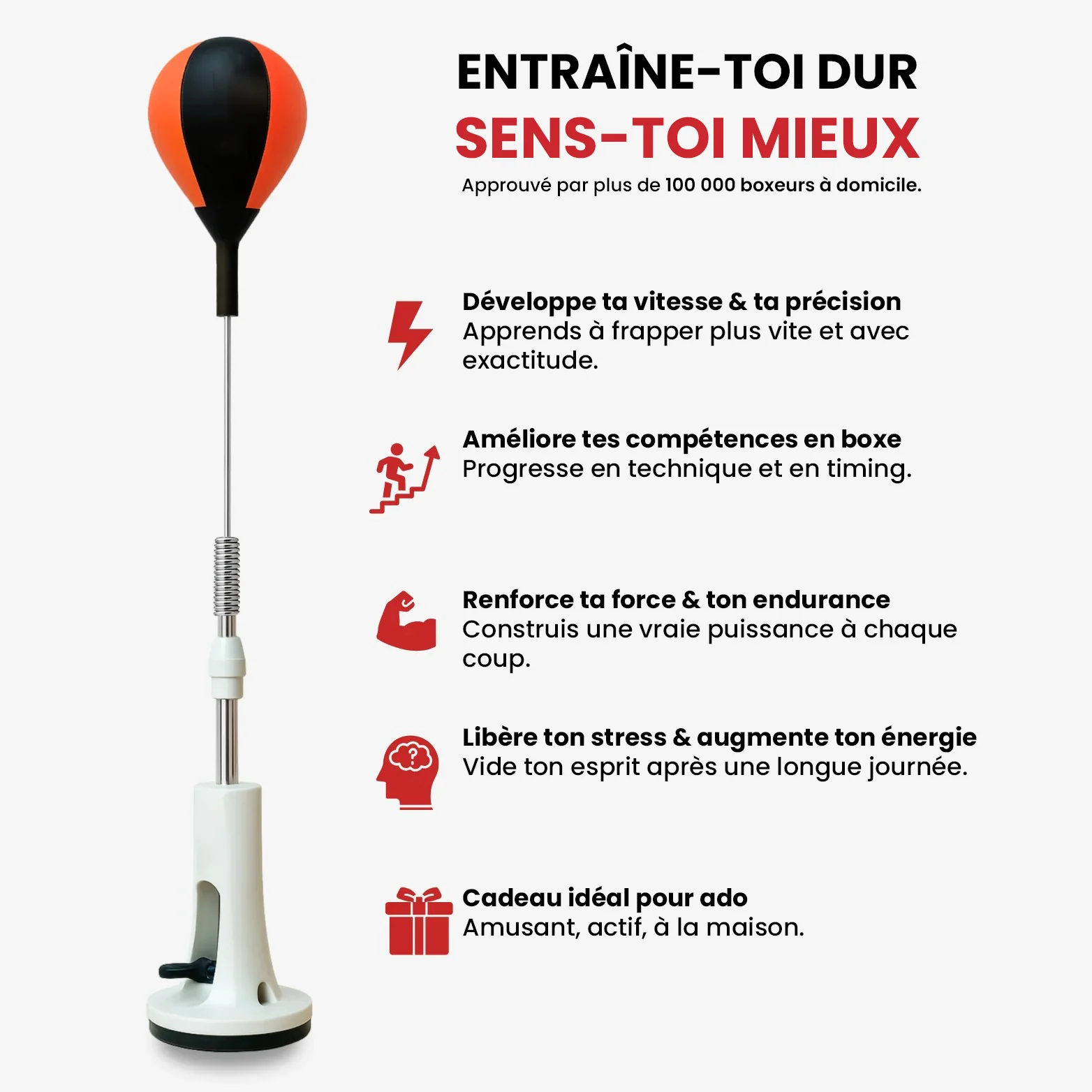 Il t’aide à libérer ton stress, rester actif, renforcer le haut du corps et développer des réflexes rapides grâce à un système de rebond ultra-réactif.