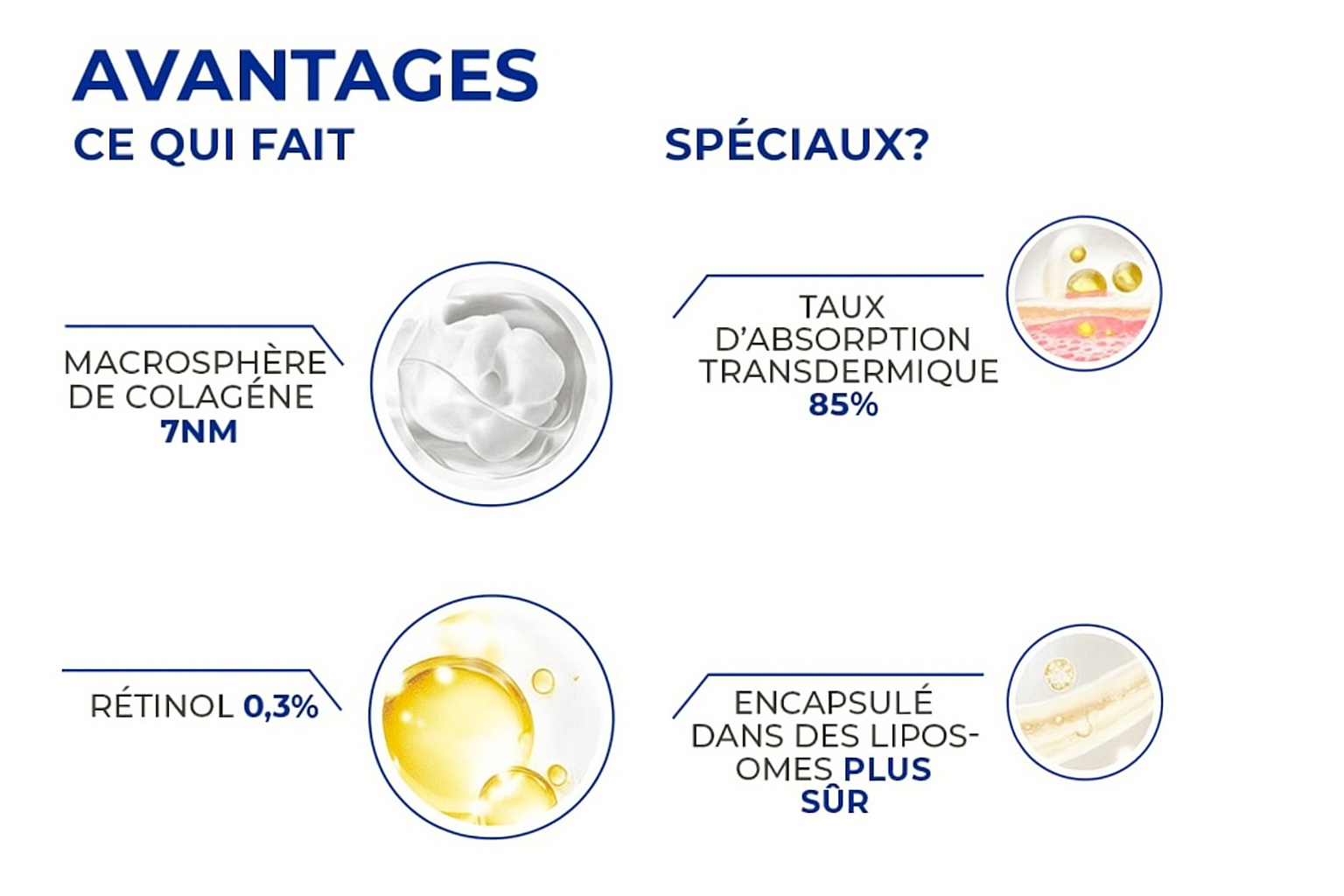 ✅ Lisse les rides et ridules – Le rétinol stimule le renouvellement cellulaire pour une peau plus jeune.