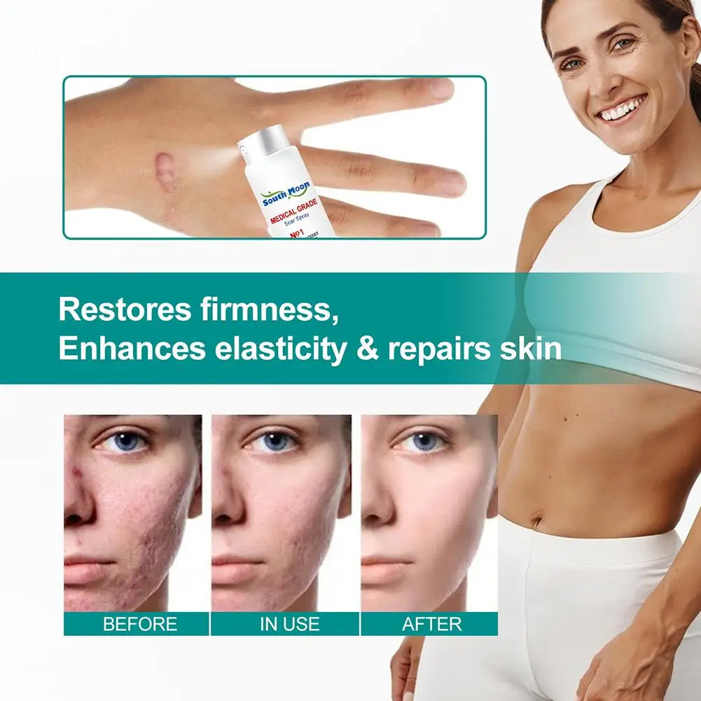 Ce spray cicatriciel est conçu pour aider à réduire l'apparence de diverses cicatrices, y compris les cicatrices chirurgicales, de brûlures, hypertrophiques et chéloïdes. Formulé avec de l'allantoïne, de l'aloe vera et de la vitamine E, il favorise l'hydratation de la peau et la régénération des tissus tout en formant une couche protectrice respirante pour stimuler la guérison naturelle. Idéal pour les peaux sensibles, il est exempt de parabènes, sulfates et parfum.