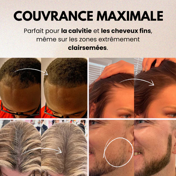 - Les fibres capillaires épaississantes s'accrochent aux cheveux fins et clairsemés, créant instantanément une chevelure plus dense et volumineuse.